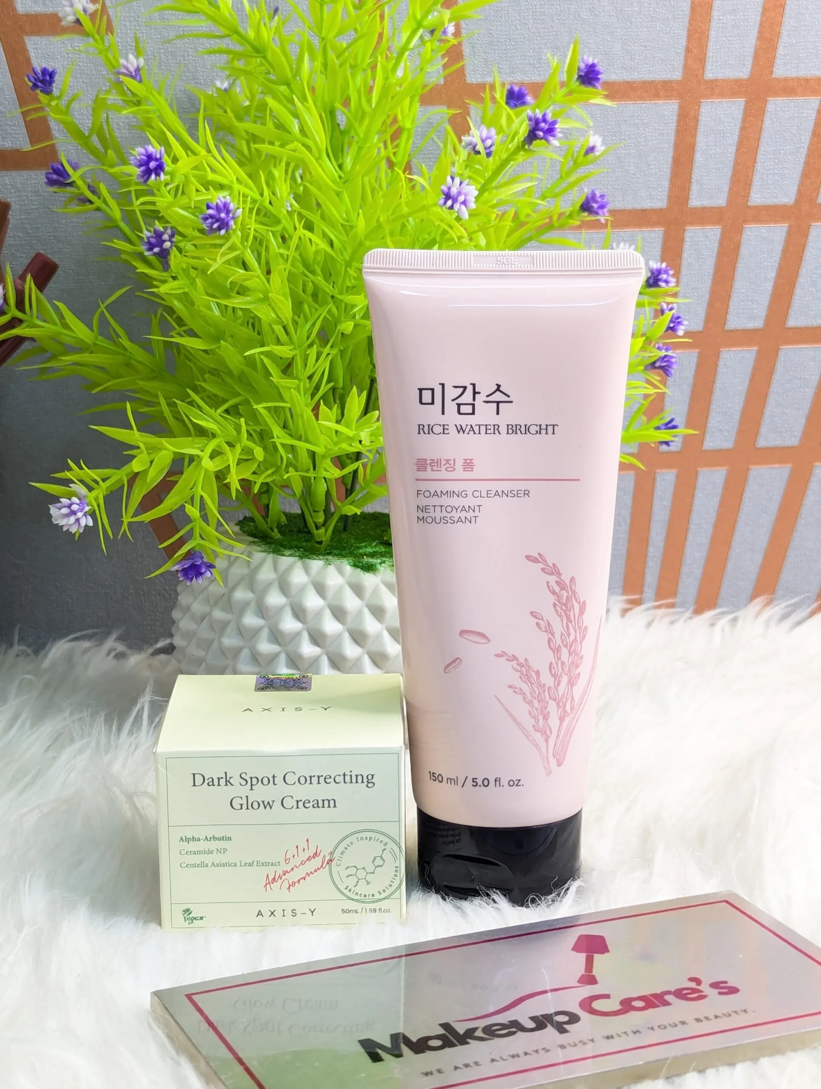 The Face Shop Rice Water Bright Foaming Cleanser + AXIS-Y Dark Spot Correcting Glow Cream